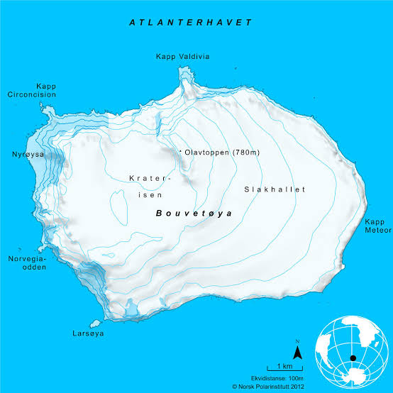 Bouvet Island: This uninhabited island is located in the South Atlantic Ocean, and it's considered the most remote island in the world. The island is covered in glaciers and has a rugged terrain that makes it nearly impossible to reach. Bouvet Island is also home to an active volcano that last erupted in 2016. Its is a territoryof Norway.